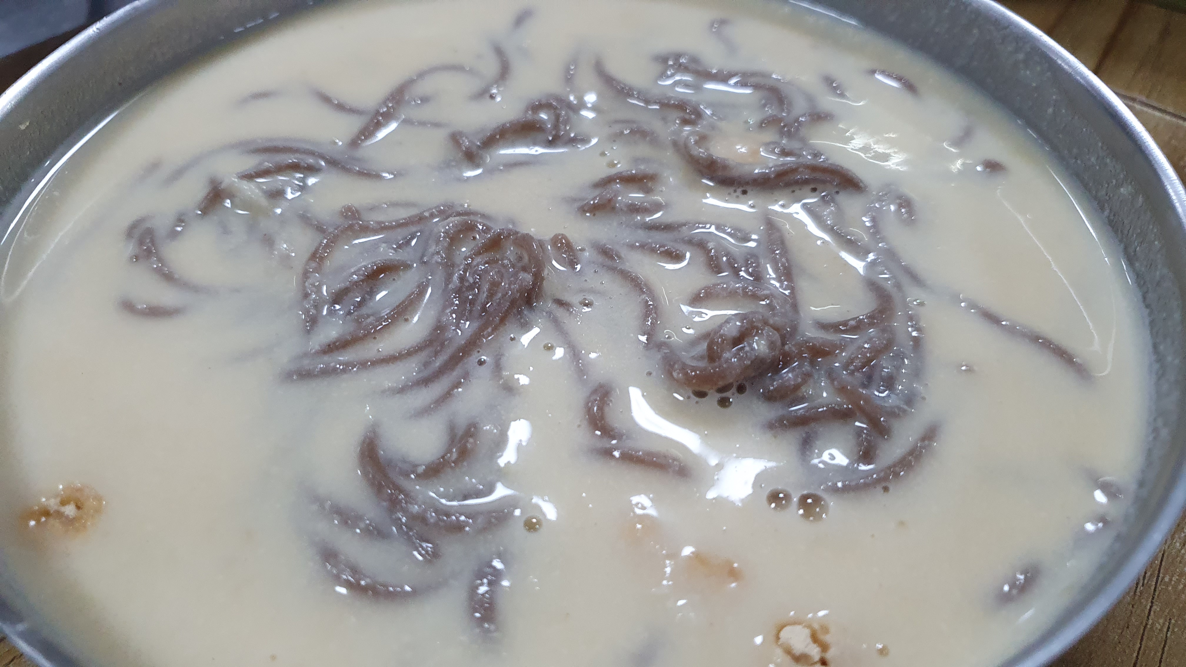 심지어 콩국물도 남김없이 다 먹어버릴 정도로요