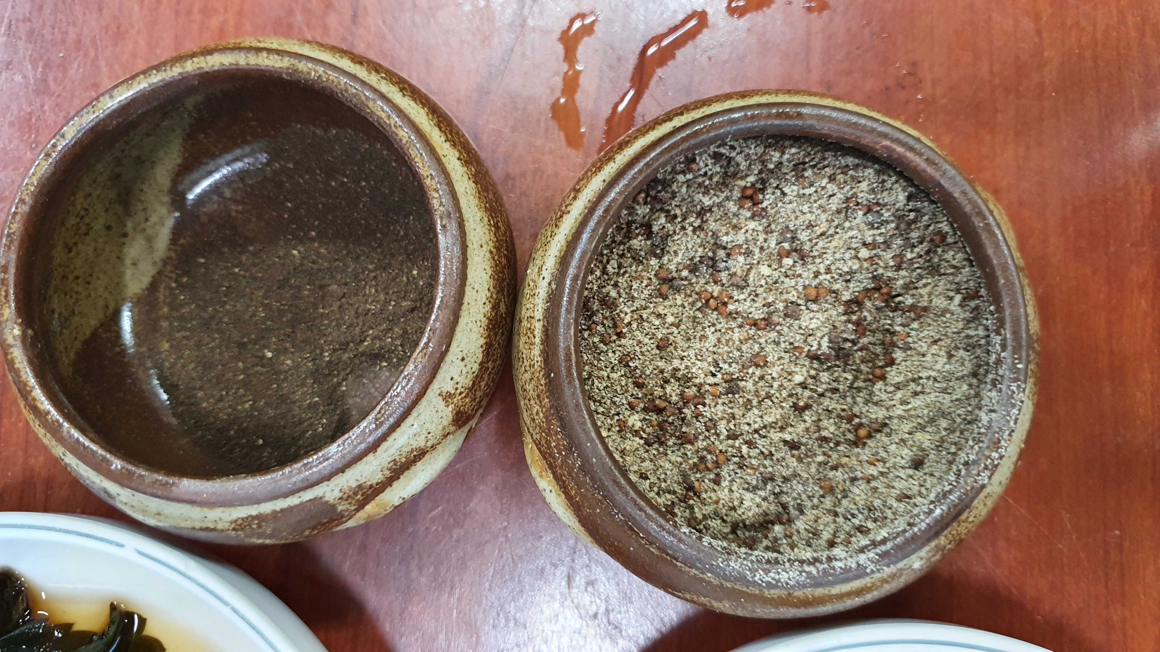 (맷돌로 잣, 땅콩을 같이 넣고 갈아 비법 콩국물을 내신다고 해용)